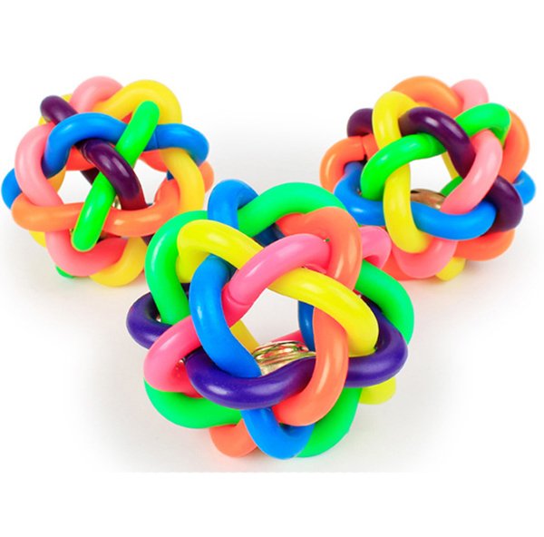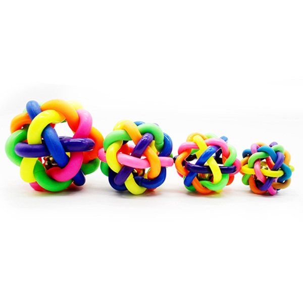 Pet Toy Ball with Bell Colorful Rubber Knot Balls Cat Dog Play Interactive Toys